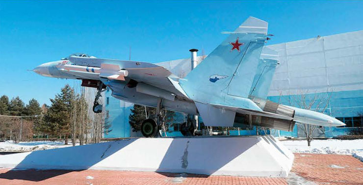 Один из первых серийных истребителей Су-27, на самолете подвешены ракеты Р-60 и Р-27. У истребителей первых серий обтекатели антенны РЛС и радиопрозрачные законцовки килей были зеленого цвета, на самолетах более поздней постройки - темно-серого цвета.