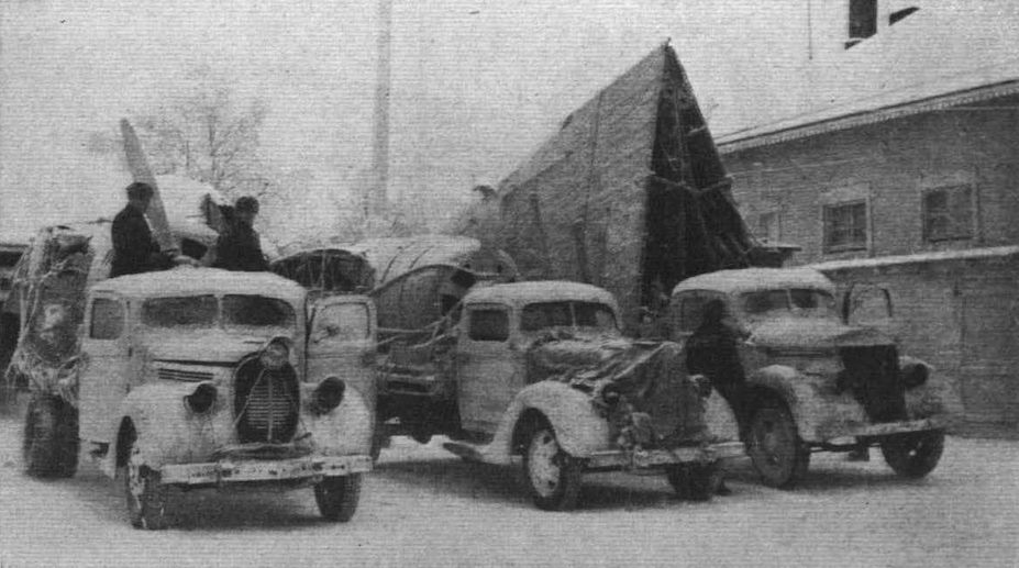 After dissection a Russian bomber (Z.K.B. 26 ?) is carted off for study.