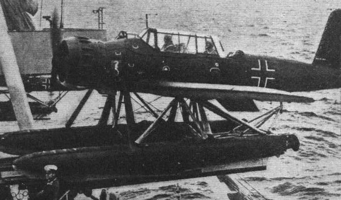 Эскадрильи корабельного базирования 96 и 5./196 первоначально базировались на Вильгельмехафен и Киль-Холтенау. На фотографии: самолет на борту тяжелого крейсера "Принц Ойген".