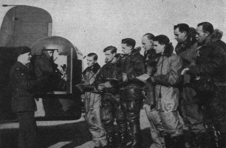 Where do we go from here? The crew of a Whitley go into a huddle over the night's operation.