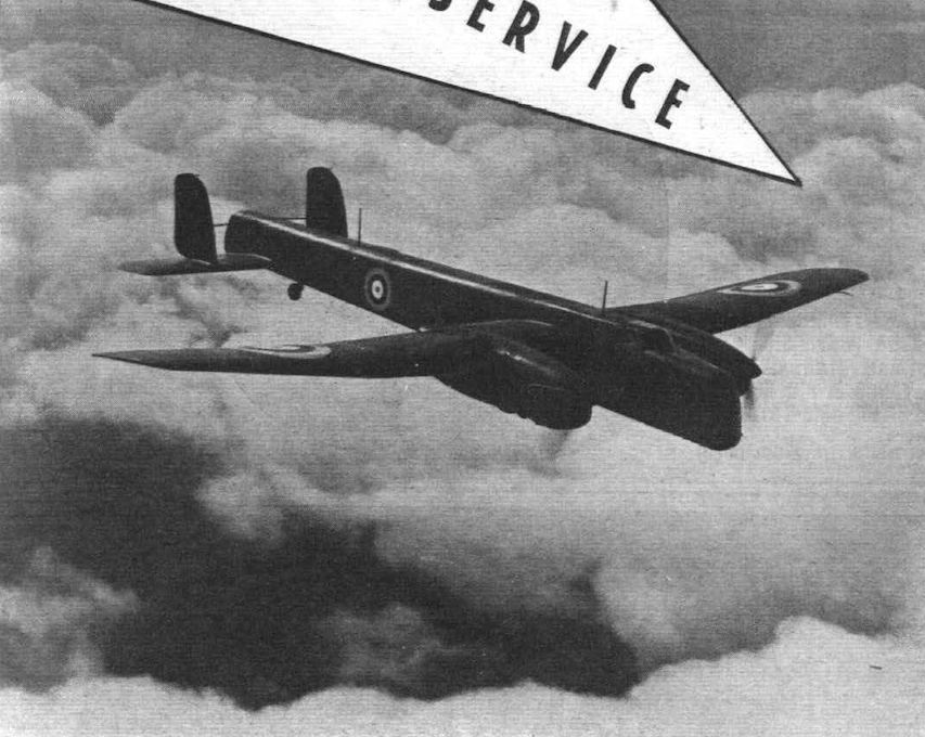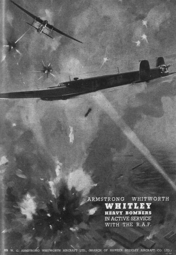 OUTPUT: Typifying the high-speed bomber carrying a comparatively light load and the slower "heavy-weight" type, the Bristol Blenheim and the Armstrong-Whitworth Whitley (shown) are both key types in the expanded R.A.F.