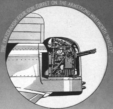 The two views show the stern defence of the Whitley, the Nash and Thompson power-driven turret housing four Browning guns.