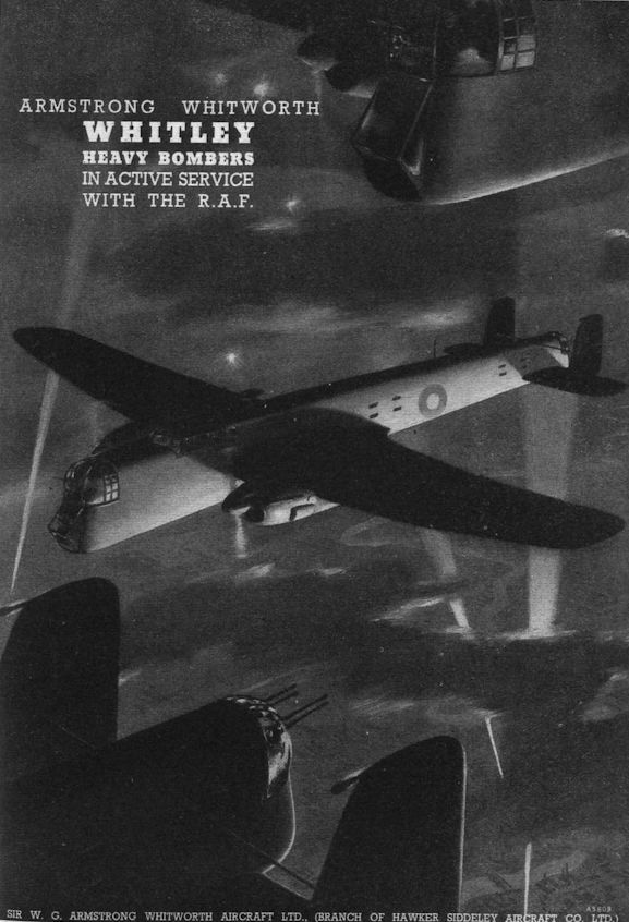 Средний бомбардировщик, двухмоторный цельнометаллический моноплан с двухкилевым оперением и убирающимся шасси с хвостовым колесом. Экипаж 5 человек. Спроектирован в КБ фирмы "Армстронг-Уитворт" под руководством Дж.Ллойда. Опытный образец самолета впервые поднялся в воздух 17 марта 1936 г. Серийное производство на заводе "Армстронг-Уитворт" в Ковентри началось в феврале 1937 г. Всего выпущено 1824 экз., из них 1678 бомбардировщиков. "Уитли" поступил на вооружение ВВС Великобритании в марте 1937 г.