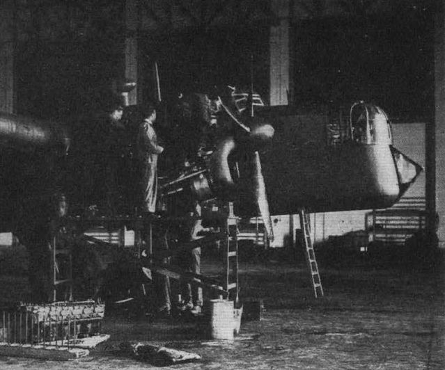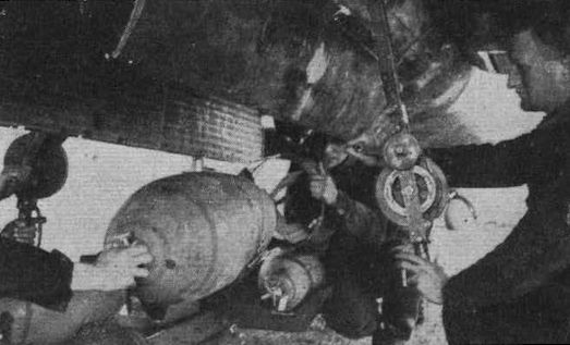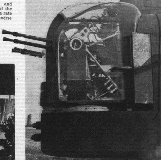 OFFENSIVELY DEFENSIVE: The Nash and Thompson four-gun power-operated turret in the tail of the Whitley. The guns are .303 in. Brownings, each with a rate of fire of 1,200 rounds per minute. The turret can traverse rather more than 180 degrees and is, therefore, capable of warding off beam attacks. The operation of these turrets is so sweet that, after some practice, sighting is quite without mental effort.