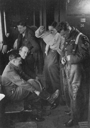 Bomber sergeants, in this case a Whitley crew, “dressing up” in the locker room before a bombing raid.