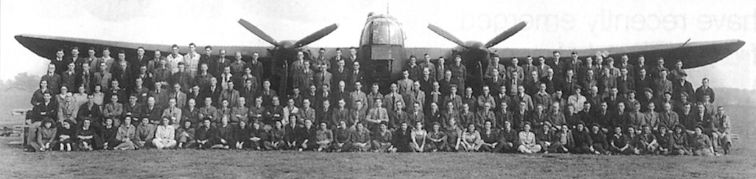 Erecting Merlin-engined Whitley Vs. The photograph shows sub-assemblies laid out in approximately the position they will occupy on the machine.