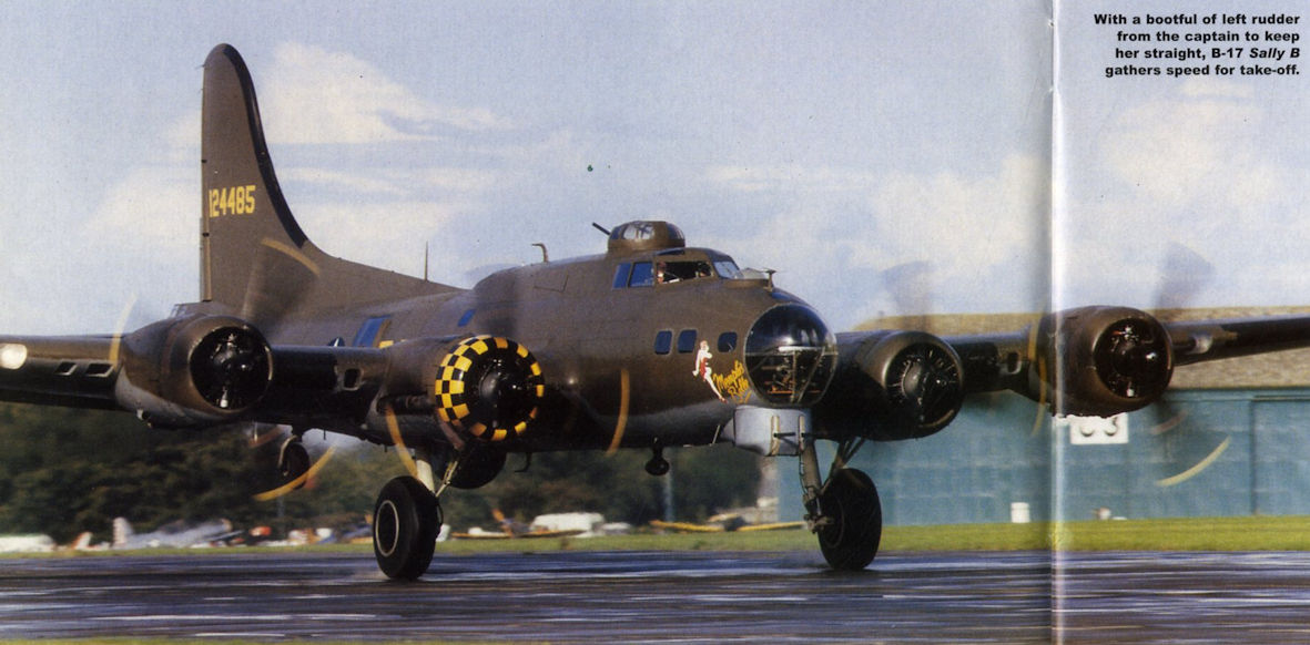 Регистрационный номер: G-BEDF [29], N17TE [29] With a bootful of left rudder from the captain to keep her straight, B-17 Sally B gathers speed for take-off.