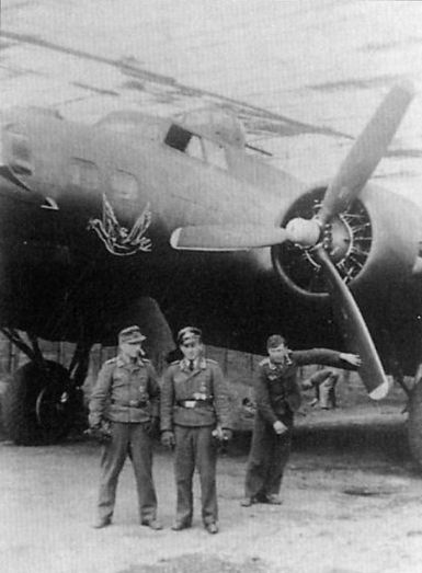 За этот сбитый четырехмотроный бомбардировщик - немецкому асу Хайнцу Бэру (на снимке слева) засчитали одну победу, а не четыре, как думают некоторые. 184-ю победу и одну из первых над B-17