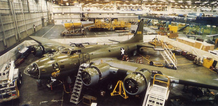 Boeing B-17F Flying Fortress 42-29782, seen here in Boeing’s 737/757 assembly hall at Renton, is being rebuilt to zero-hour standard for the Seattle Museum of Flight by a team of 80 volunteers. Rollout is scheduled for early February 1997, with first flight in May.