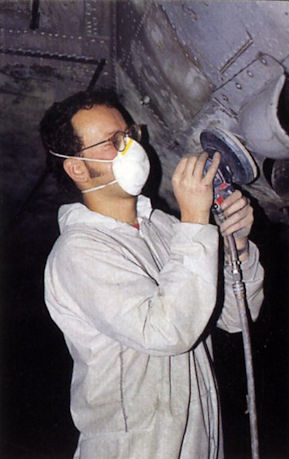 Aviation Specialties removed two B-17s from the atomic test site; the second, USAAF s/n 44-83722, had suffered much heavier damage. Here, part of the fuselage is seen in the Aviation Specialties junk pile during October 1985. (The good thing about the operators of fire-bomber and agricultural aircraft is that they never throw anything away.) The remains were purchased by Kermit Weeks, and some of this aircraft has been incorporated into the composite display B-17 that forms part of his Fantasy of Flight attraction at Polk City, Florida.