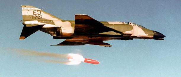 Ракета средней дальности AIM-7D, подвешенная под "Фантомом" в полуутопленном положении.