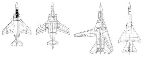 Сравнительные габариты F-4B, «Буканира», F-111B и TSR-2 в масштабе 1/500.