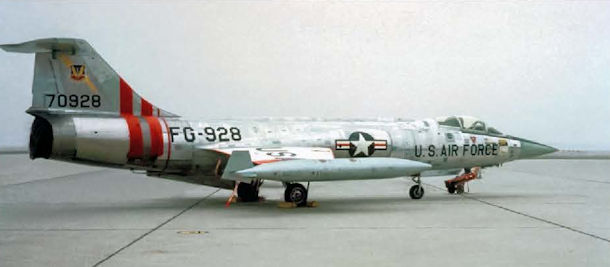 Регистрационный номер: FG-857 F-104A, принадлежавший 56-й истребительной эскадрилье ВВС США. Позже этот самолет передали в ВВС Национальной гвардии. Разбился в авиакатастрофе в 1968 году.