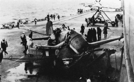 Англичане стали широко использовать "корсары" с авианосцев раньше, чем американцы. Осенью 1943 г. они появились на "Илластриэсе". Первой боевой операцией для них стал удар по линкору "Тирпиц" в Северной Норвегии 3 апреля 1944 г., в котором были задействованы истребители с "Викториэса". Они участвовали также в налетах на эту же цель в июле и августе.