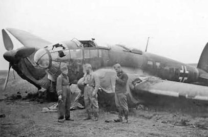 Both of the Heinkel's engines had fallen from their bearings and the undercarriage was crushed. Every Perspex window had to be remoulded.