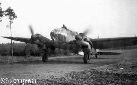 Бомбардировщик "Хейнкель" He 111H-14 из состава I/KG53, сбитый советскими зенитками над окраиной города Великие Луки 1 января 1943г.