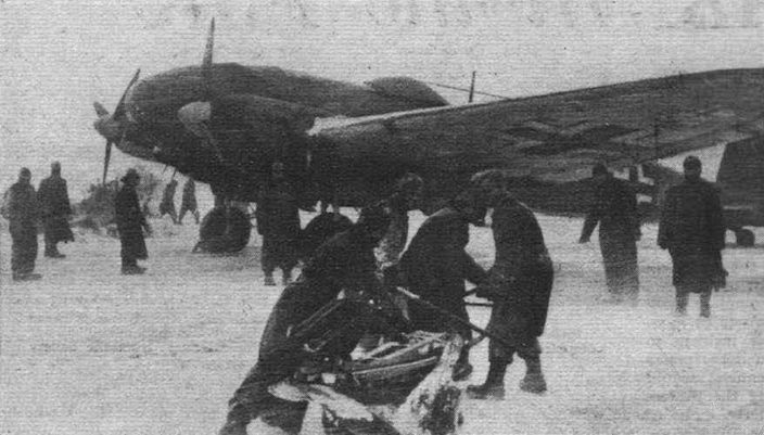He111H-5 (сер. N 4357) из состава 1/KG26, сбитый 31 декабря 1941г. Экипаж в составе унтер-офицеров Эгельберта Ротмайера (Uffz Engelbert Roitmayr), Карла Бергхоффа (Uffz Karl Berghoff), Зигфрида Лаугвица (Uffz Sigfred Laugwitz) и Ганса Юргена Каунсера (Uffz Hans-Jurgen Kansier)