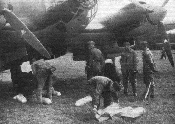 Авиационная свалка под Мюнхеном сфотографирована в 1946 году. На снимке можно различить He 111, Me 262, Ju 88, Ju 52/3m и, как минимум, один Bf 110. К 25 апреля 1945 года большинство He 111 переключили на выполнение транспортных перевозок, но 27 самолетов из Gruppe Uhl продолжали выполнять ночные бомбардировки железнодорожных станций. Были еще 15 буксировщиков планеров из группы Schleppgruppe 1, дислоцированной в Кёнигграце.
