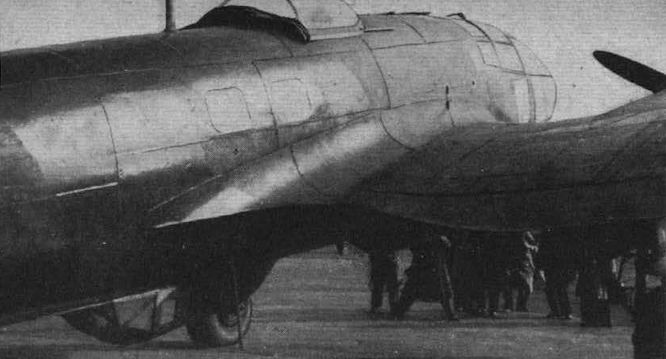 The curved plan form of the wing of earlier He 111s has been changed to straight taper.