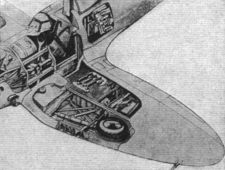 The single-spar wing of the Heinkel 112 is bad design because the undercarriage cuts into the leading-edge shell.
