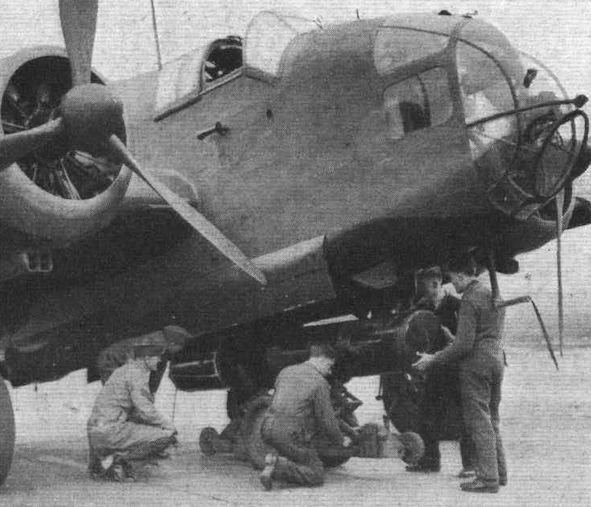 The original caption to this posed 1940 picture reads, “The navigator/bomb aimer makes an observation through the transparent nose of a Hampden”. Stirring stuff. However, the aircraft’s unusually narrow fuselage did provide better visibility for pilot and crew than in most other bombers.