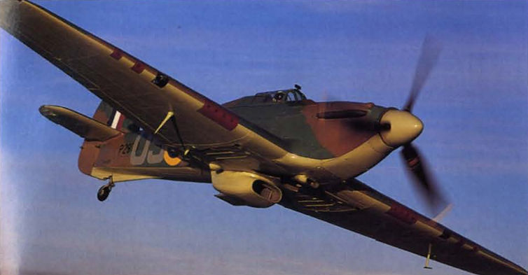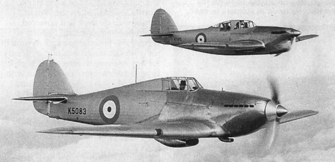 HAWKER HURRICANE I. Rolls-Royce Merlin engine of 1,050 h.p.; eight machine guns; 330 m.p.h.