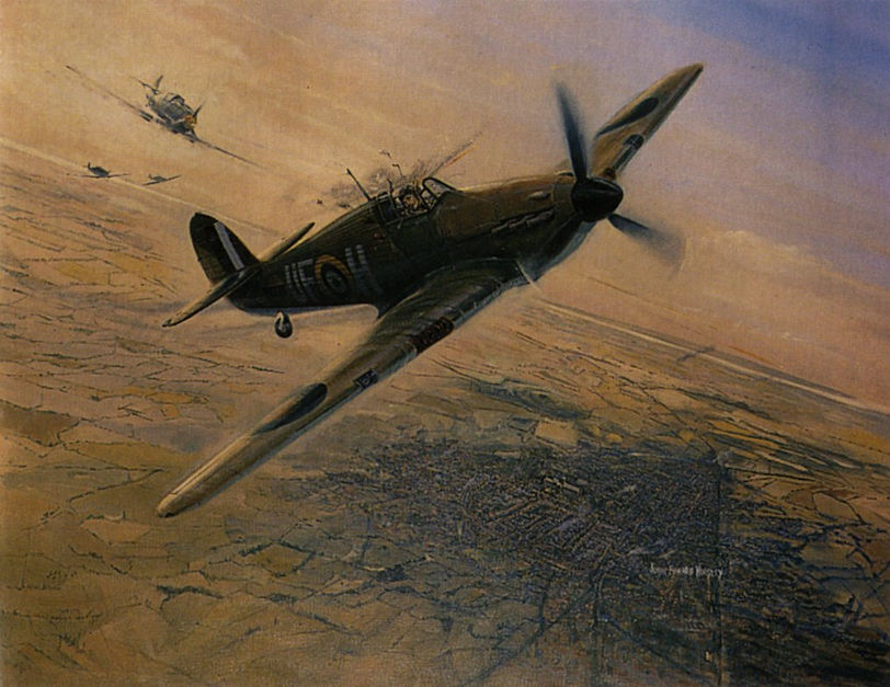 Frank Wootton’s oil painting of Hawker Hurricanes is entitled Sqn Ldr Bob Stanford Tuck. -