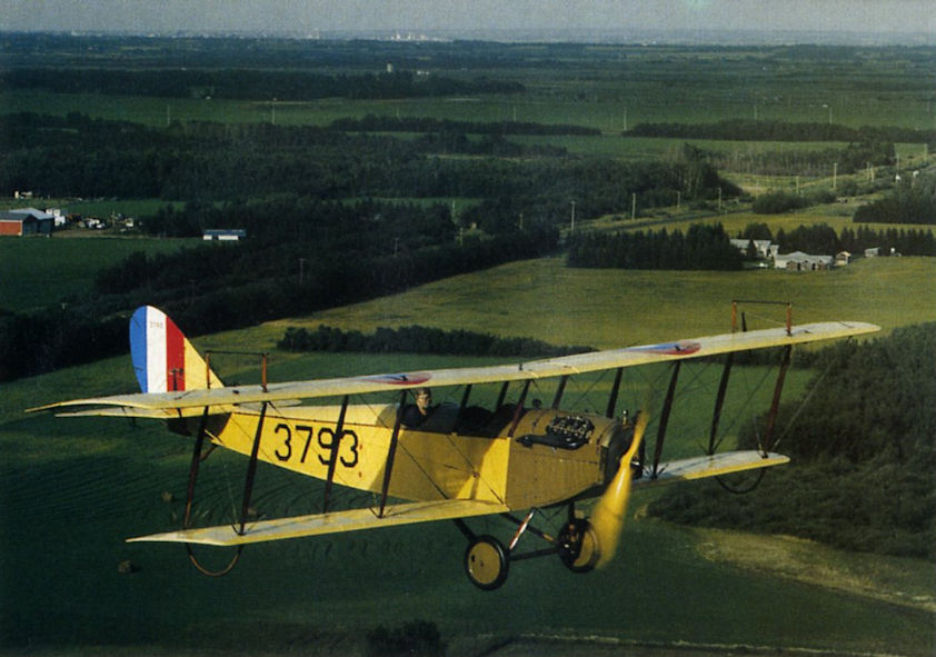 Регистрационный номер: C-GDCX [8] Another fine air-to-air view of the Jenny over the countryside of Western Canada. The aircraft was built on the other side of the North American continent, at Buffalo, New York, in 1918; the Curtiss JN-4 was the principal ab initio trainer for pilots in the USA and Canada during World War One.