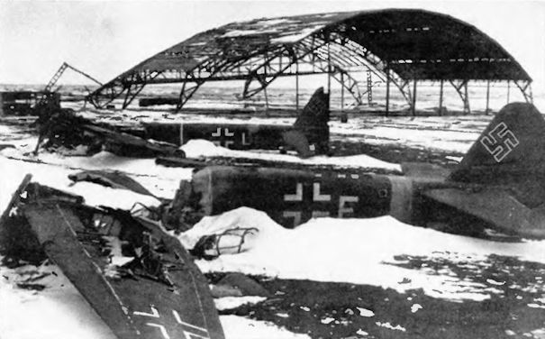 Немецкий аэродром в Армавире после налета Ил-2. Февраль 1943 г.