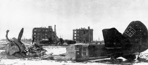 Вид немецкого аэродрома в Армавире после налета Ил-2, февраль 1943 г.