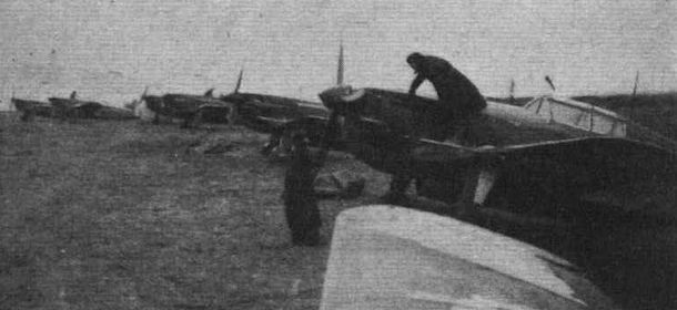 Истребители Моран-Солнье MS-406C1 из польской «Группы Мотпеллье» на а. Лион-Брон, 26 марта 1940 г. Любопытно, что на этом фото видно не менее двадцати «Моранов», при официально заявленной численности «Группы Мотпеллье» в восемнадцать машин