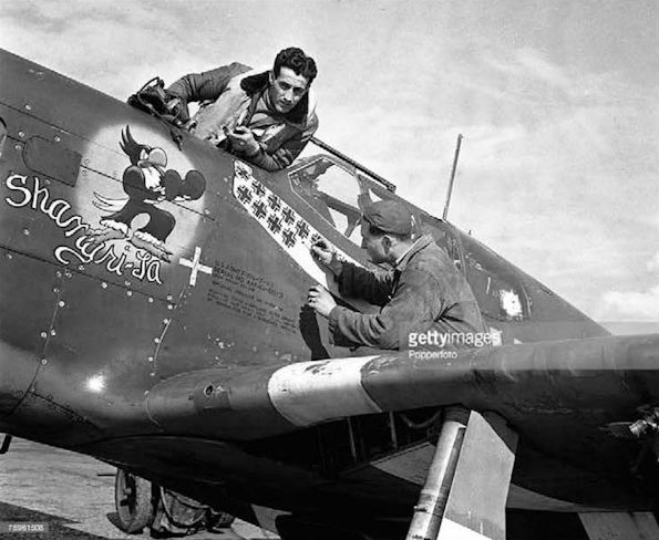 Командир 133-го (польского) авиакрыла винг-коммандер Станислав Скальский в кабине своего истребителя Mustang Mk III. Скальский обычно летал на самолете с номером FZ152C его персональным кодом "SS". На борту, под кабиной, видны отметки о победах. Скальский командовал 133-м крылом с апреля по июль 1944 года.