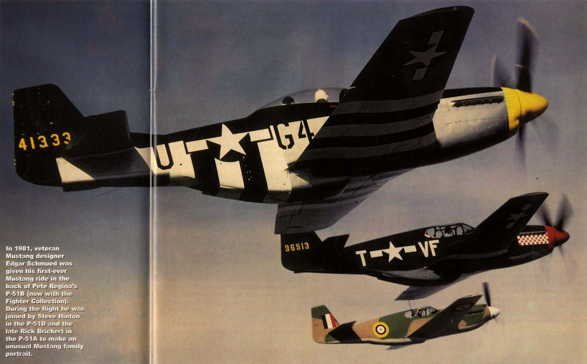 Одноместный истребитель, цельнометаллический моноплан с закрытой кабиной и убирающимся шасси с хвостовым колесом. Спроектирован в КБ фирмы "Норт Америкэн авиэйшн" под руководством Р.Раиса. Первый полет опытный образец "Мустанга" совершил 26 октября 1940 г. Серийное производство начато в июне 1941 г. Самолет выпускался заводами "Норт Америкэн" в Инглвуде и Далласе и заводом "Коммонвеллс эйркрафт корпорейшн" в Фишерменс-Бэнд (Австралия). Всего выпущено 15 019 экз.