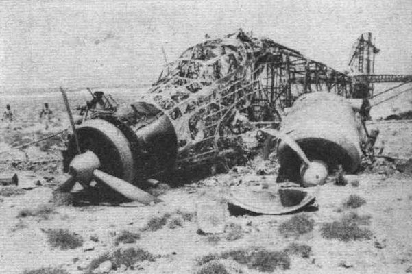 DESERT DESERTS: The remains of a Savoia Marchetti S 79 bomber shot down in the Western Desert.