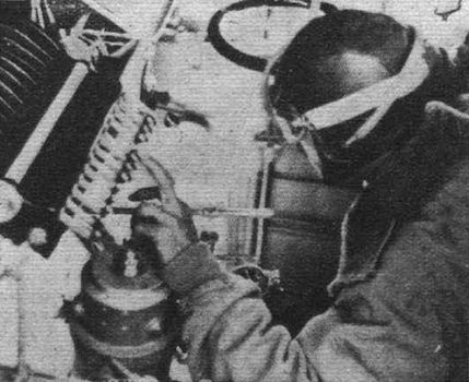FOURPENCE! An intimate study of an Italian bomb aimer missing the Ark Royal. The cash register keys belong to the bomb release gear.