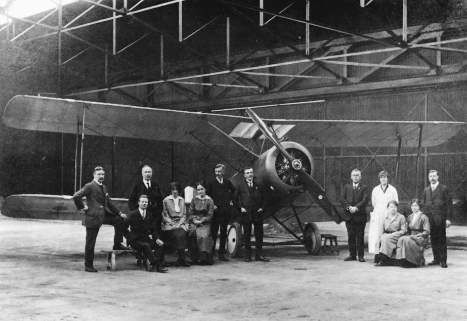 Только что построенный "полуторастоечник" у заводского ангара фирмы "Сопвич" в Бруклендсе