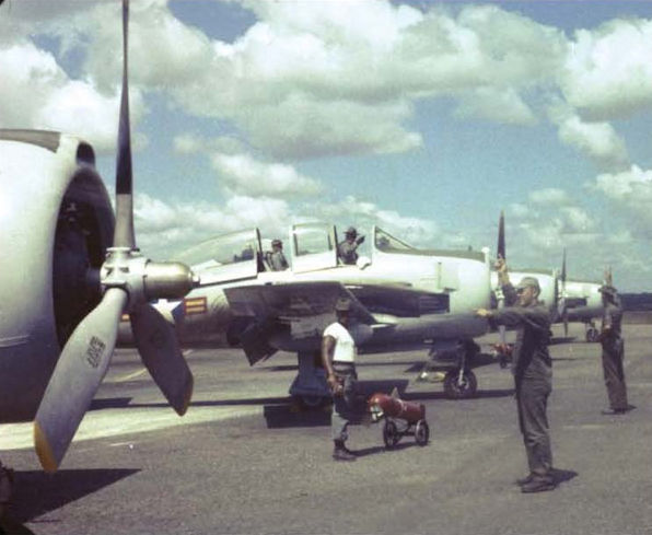 В 1961 году Южному Вьетнаму передали ранее принадлежавшие ВМС США самолеты T-28B Trojan. Сначала ими вооружили только одну эскадрилью ВВС Южного Вьетнама (авиабаза Ня Транг). Самолеты применялись для нанесения ударов по инфраструктуре НФО.