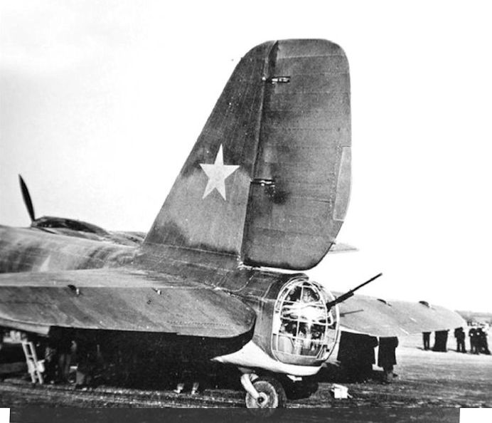 ТБ-7 N 42047 с двигателями М-82 и носовой частью фюзеляжа старого типа. В такой же конфигурации был выпущен и Пе-8 N 42058