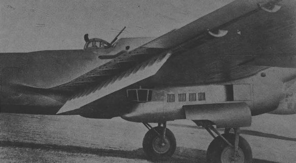 The first prototype ANT-42 with definitive radiator arrangement photographed in 1938 while undergoing NII V-VS trials with a ski undercarriage