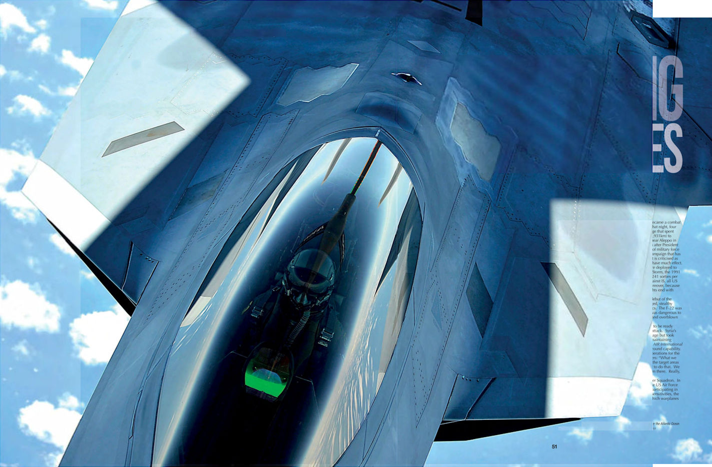 В ночь на 23 сентября США и страны-союзники нанесли первую серию воздушных ударов по позициям «Исламского государства» (ИГ) в Сирии. Как заявил пресс-секретарь Пентагона контр-адмирал Джон Кирби (John Kirby), были задействованы «истребители, бомбардировщики и ракеты Tomahawk». Кроме США в операции принимают участие Бахрейн, Иордания, Саудовская Аравия и Объединенные Арабские Эмираты. В этих налетах впервые в боевых условиях были использованы истребители F-22 Raptor. Они нанесли несколько ударов по г. Ракка и его пригороду, т.к. считается, что там расположены основные позиции боевиков ИГ. Подробности боевого дебюта «Рэптора» не разглашались. Однако эксперты предполагают, что в рейде участвовали шесть F-22 Block 35 из состава 1-го истребительного крыла ВВС США, дислоцированного на авиабазе Лэнгли-Юстис (шт. Вирджиния). Машины могли действовать с аэродрома Аль Дафра (ОАЭ), куда были переброшены в апреле.