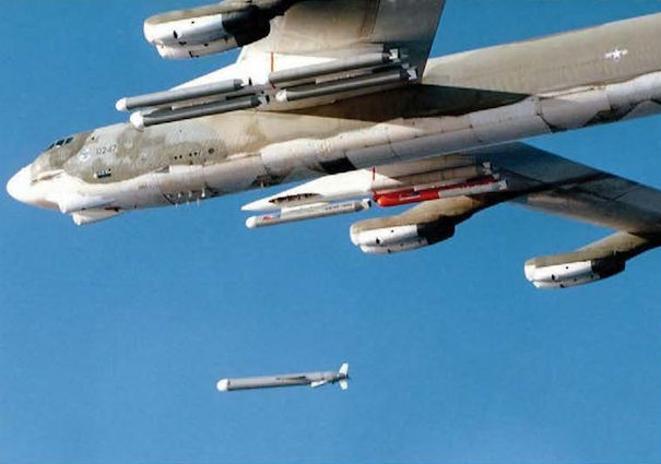 При внешней скромности размеров, американские крылатые ракеты AGM-86 и BGM-109 (на фото), вскоре названная «Томагавк», были очень серьёзным средством нападения, обладавшим значительной дальностью действия, высокой скрытностью и значительными поражающими характеристиками. При этом их компактность и небольшой вес. обеспечивали значительное количество боеприпасов на борту; что позволяло легко перенасытить систему ПВО большим количеством целей и почти гарантированно обеспечить поражение атакуемого объекта.