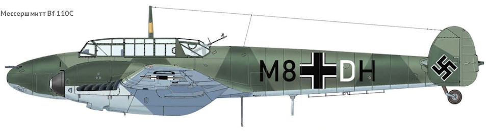 - Bf 110C с моторами DB601A и измененными законцовками крыла;