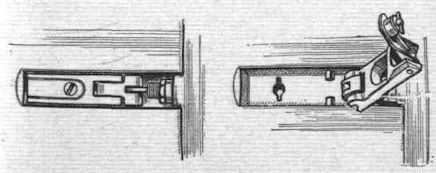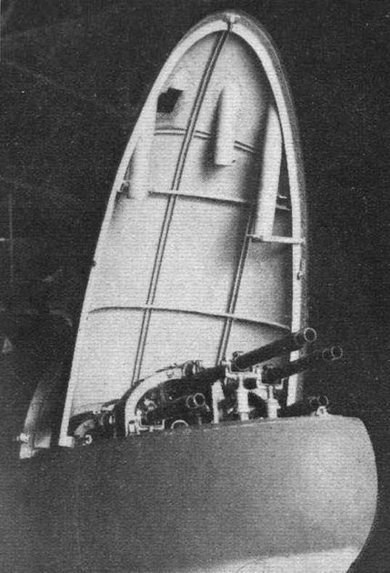 The ingenious catch which holds the cover in position over the guns in the fuselage nose.