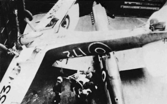 Регистрационный номер: LR642 Хрупкость машин Seafire и неопытность многих пилотов зачастую приводили к тому, что посадки на палубу заканчивались примерно так. Этот L.Mk IIC из 807-й (809-й ???) эскадрильи потерпел аварию при посадке на авианосец "Баттлер" летом 1943 года во время вторжения союзников в Италию (1943 год). В боях над Салерно важную роль сыграли истребители Martlet и Seafire авиации британских ВМС.
