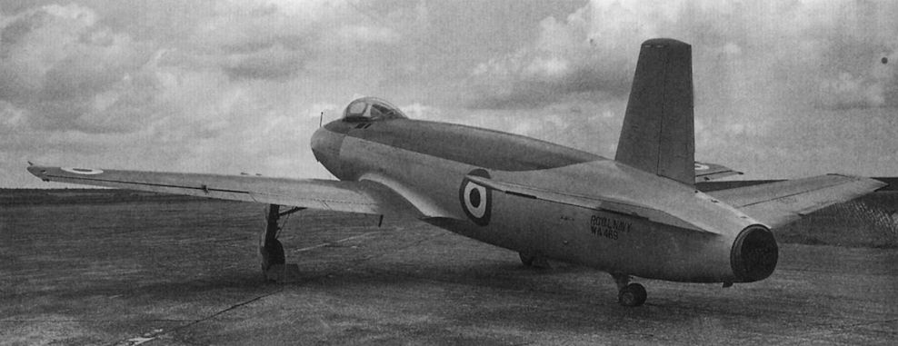 Регистрационный номер: WA469 The first production Attacker F.1, WA469, in which test pilot Les Colquhoun suffered inadvertent folding of the starboard wingtip during flight.