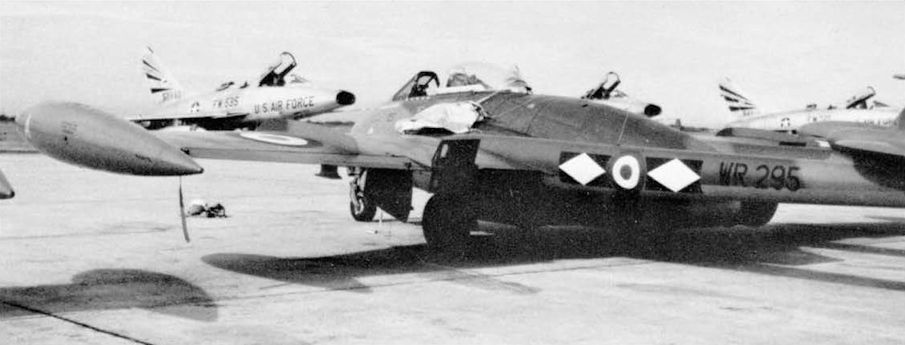 Регистрационный номер: WR295 На авиабазе «Дон Муанг» «Веномы» Королевских новозеландских ВВС соседствовали с американскими F-100, Таиланд, май 1957 года.