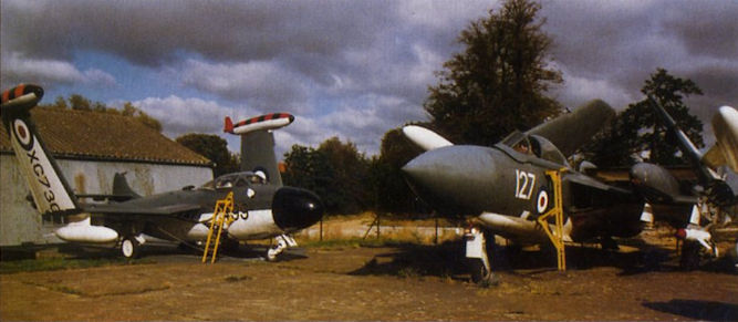 Регистрационный номер: XG730 [2] Sea Venom FAW.22 XG730 shows off by waving its wings at slumbering Sea Vixen FAW.2 XJ565.