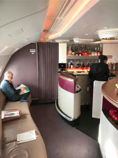The on-board bar and lounge in the Qatar A380s.