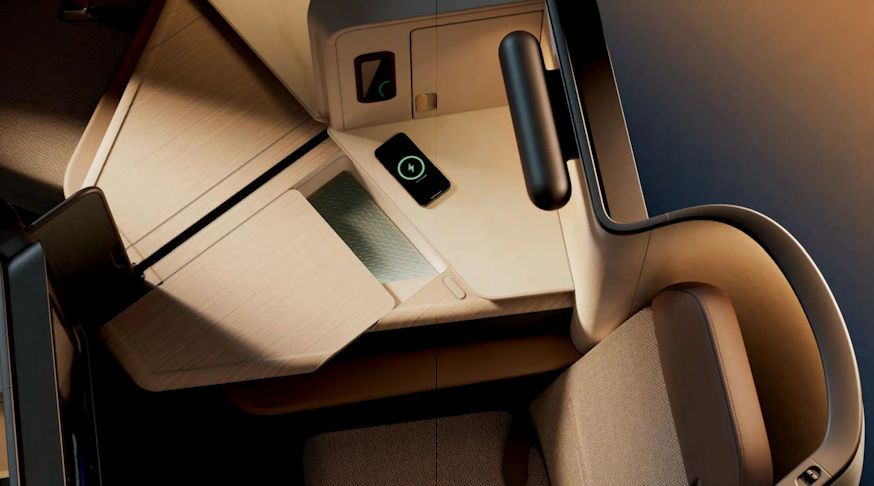 Passengers in the Aria suite can keep devices powered up with wireless charging functionality and stay connected with complimentary inflight Wi-Fi