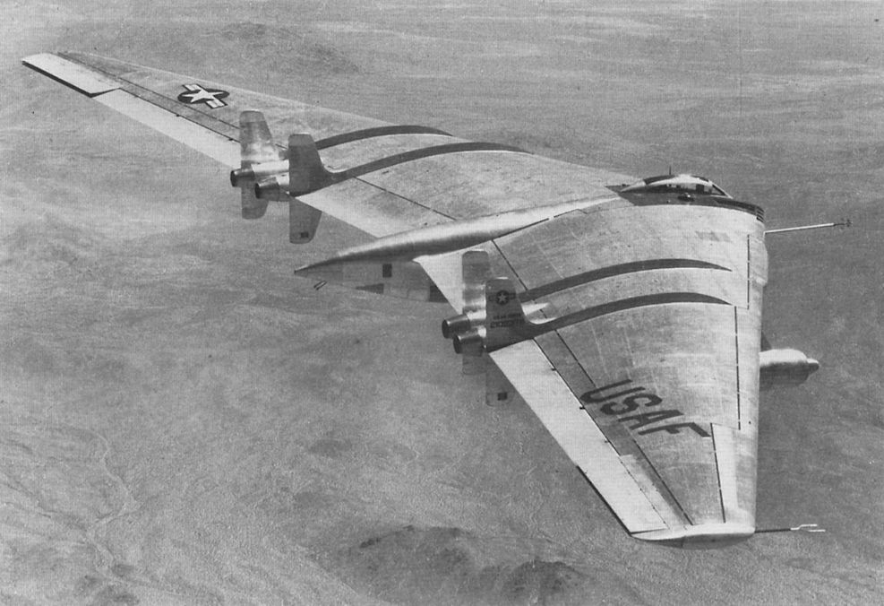 В 1942-1950 годах фирма "Northrop" разработала проекты нескольких радикально новых самолетов, включая B-35 и реактивный B-49 (на снимке YB-49). Обе машины спроектированы по схеме "летающее крыло". Ни один такой самолет серийно не строился.